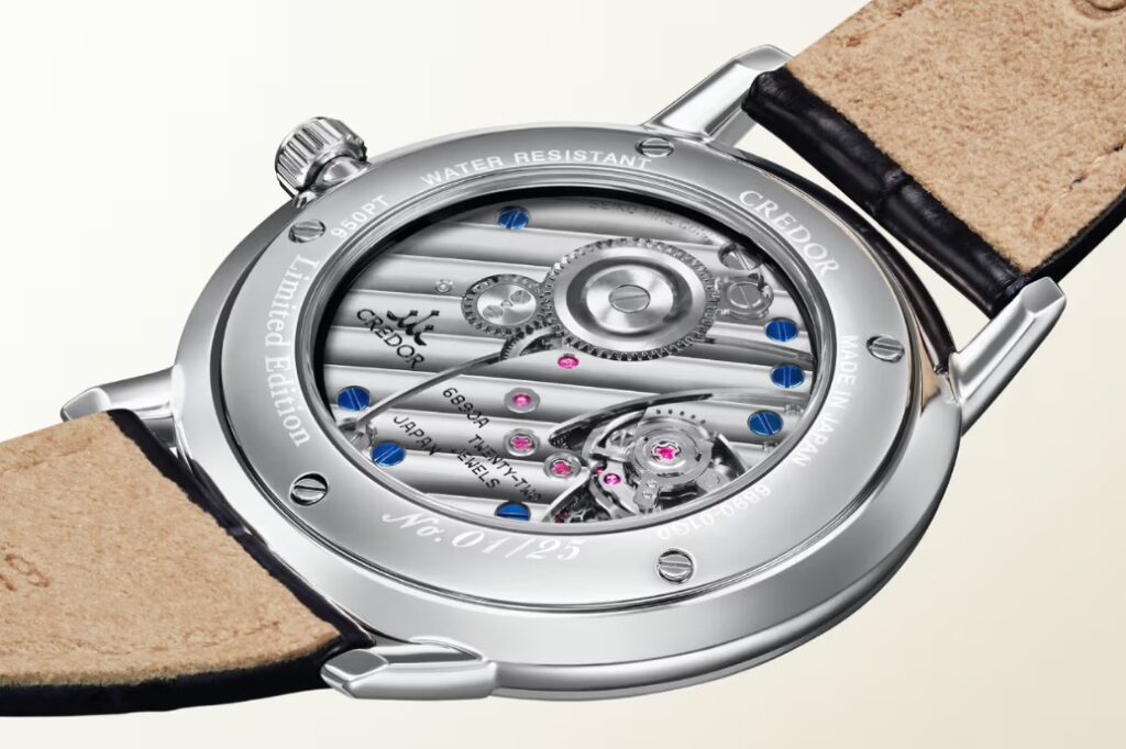 The watch further distinguishes itself through the use of taka maki-e, a traditional raised lacquer technique. While gold or silver is typical, this model employs platinum powder to build up the indexes and branding, resulting in a soft, three-dimensional glow. These platinum surfaces are meticulously polished using metal spatulas and a tool crafted from a sea bream tooth. Under the hood lies the manual-winding Caliber 6890, an ultra-thin movement measuring just 1.98mm thick. Encased in Platinum 950 with a slim 8.1mm profile. It is a limited edition run of just 25 pieces, available in June 2026 for RRP £35,000.