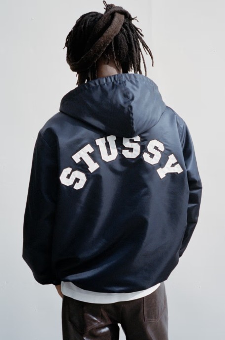 Beyond the textures, the collection delivers the classic Stüssy aesthetic fans know and love. Highlights include a navy nylon hooded bomber that brings a sport-driven edge, alongside two-tone board shorts that nod back to the brand’s Californian surf lineage. A quarter zip anorak jacket that arrives in a subtle pop of pink and other darker tones, perfectly balancing the collection’s overall colour palette. The accompanying campaign, shot with direct clarity by Antosh Cimoszko and Bailey Beckstead, captures these pieces in their natural element, focusing purely on proportion and daily wearability. The optics lean into the streetstyle the garments are intended for and highlight the street styling DNA the collection was born from.