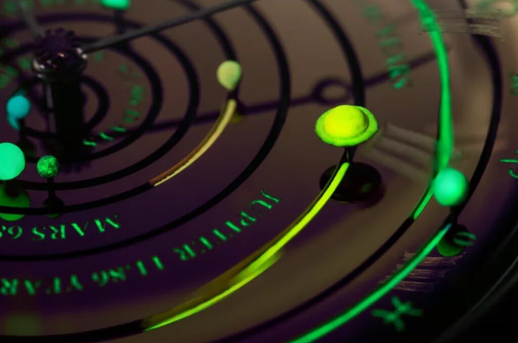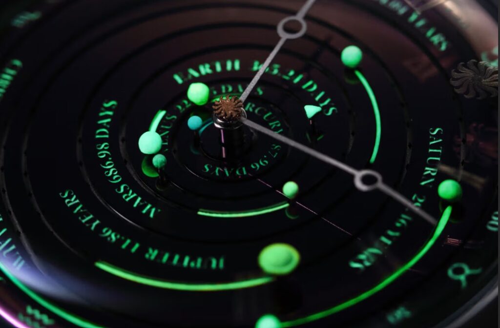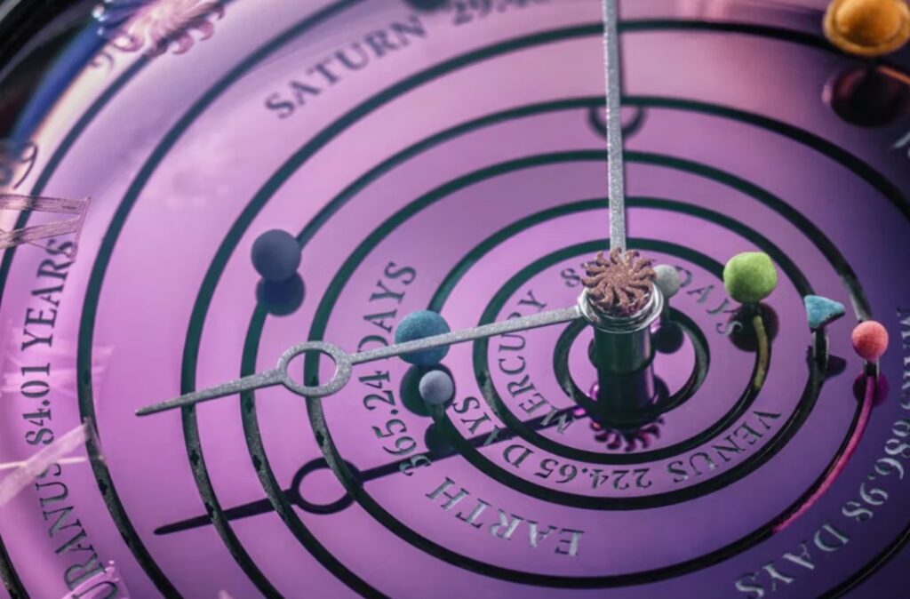 Based on a model originally introduced to celebrate the 50th anniversary of CVDK, this stunningly complex timepiece incorporates a gobsmacking 3,338 gear teeth to faithfully track the true astronomical periods of Mercury, Venus, Earth, Mars, Jupiter, Saturn, Uranus and Neptune. As the most complicated watch ever created in the brand’s atelier, it represents the combined vision of three generations of CVDK leadership, paired with contemporary design input from Revolution.